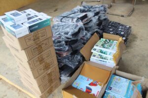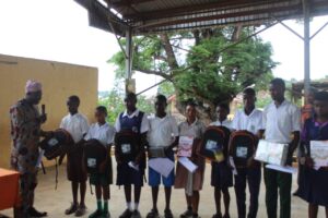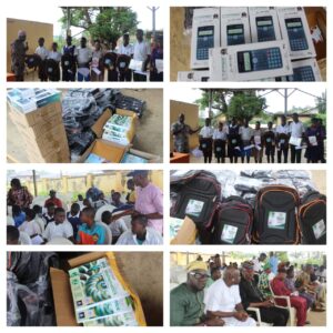 Students from Akoko South East and Akoko South West Federal Constituency in JSS1 to JSS3 and SSS1 to SSS2 received school bags filled with essential learning tools including mathematical sets, English and Mathematics textbooks, exercise books, and biros.